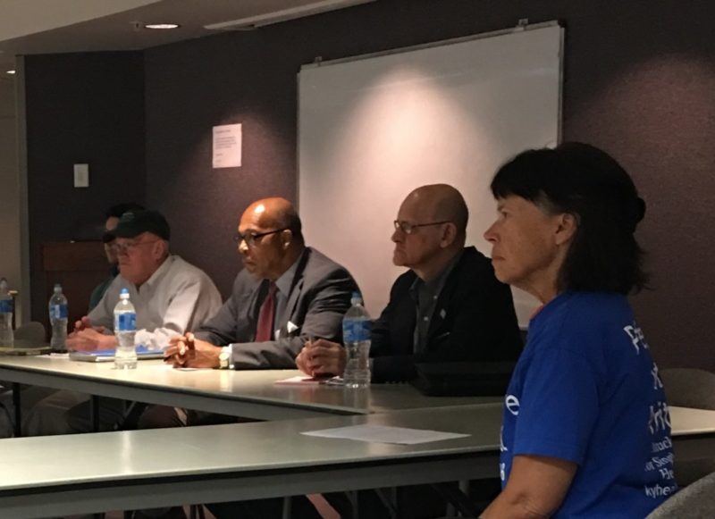 lexington panel ‹ Return to “Fix It” Film Shown in Lexington, Followed by Lively Discussion Posted on September 17, 2018 by Kay Tillow Seated L to R are the members of the discussion panel: Bill Mahan, Senator Reggie Thomas, and Dr. Edgar Lopez. Max Perlin (not in the photo) was also on the panel. Christine Perlin who organized the event is seated at right. Share and Enjoy !Shares