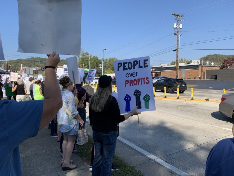 On October 18, 2025, Kentuckians gathered in over 25 cities and towns to express their concerns. In Louisville where thousands protested, Jill Harmer and Harriette Seiler passed out over 900 Improved Medicare for All flyers. In Morehead, over 300 demonstrated at Fountain Park where speakers competed with the constant car honking in support. Morehead is the home of one of Kentucky’s 35 hospitals that are at-risk of closure in the face of Medicaid cuts and inadequate funding. Kay Tillow addressed an enthusiastic crowd calling for the enactment of a national single payer health care system, free from profit and covering everyone. Such an Improved Medicare for All system would save and sustain those hospitals by funding operating costs. Many signed the single payer petition.